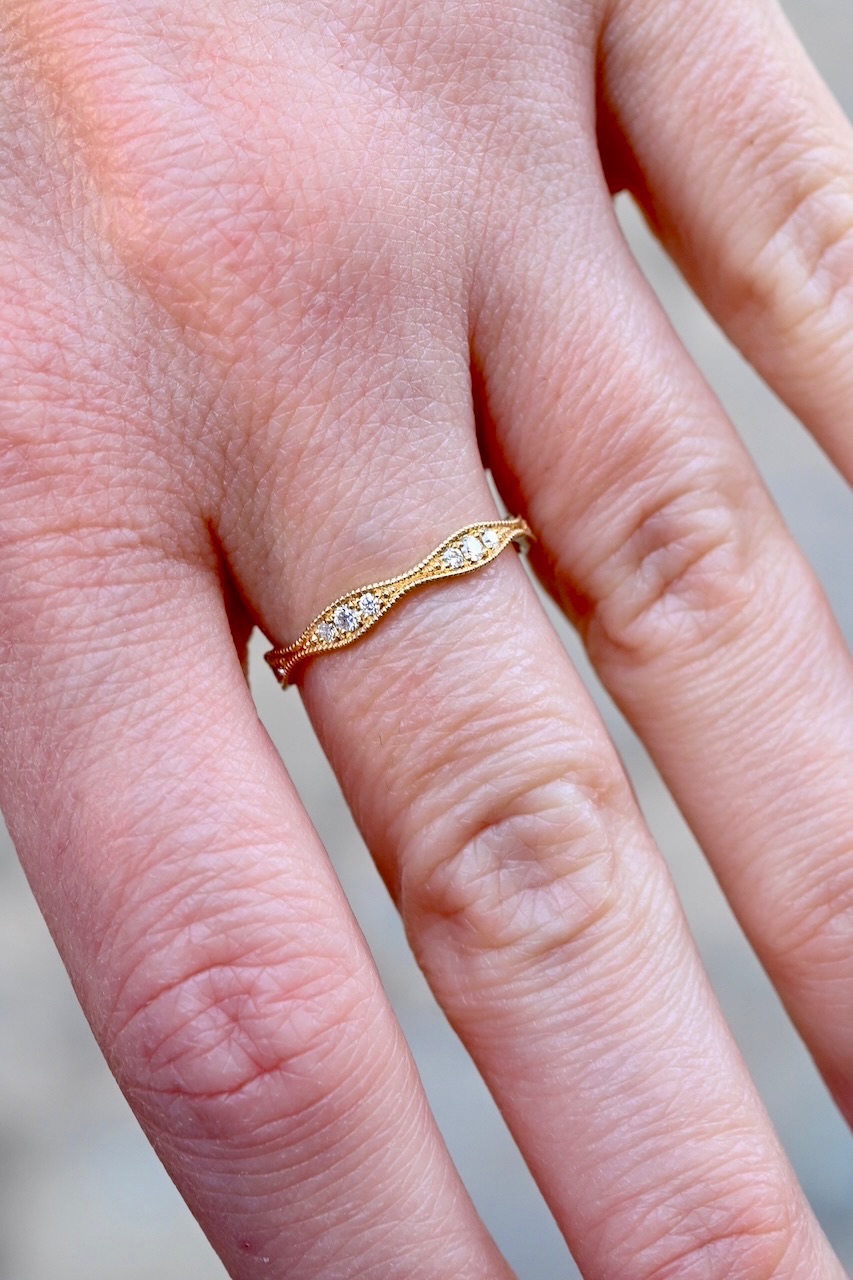 La bague Onda, un merveilleux bandeau en or jaune et diamants. A marier avec la bague Onda simple.
